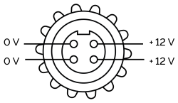 Pins 1 & 2: 0 V Pins 3 & 4: 12 V Shield: Unconnected |