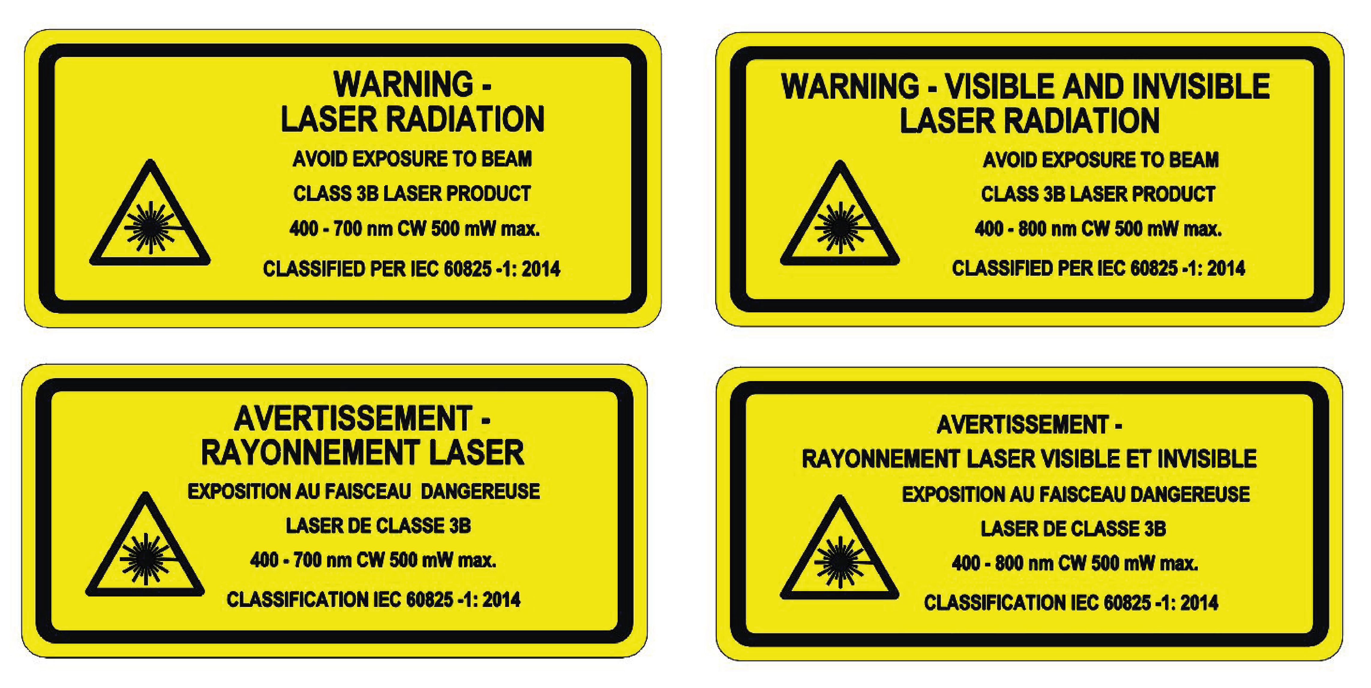Laser Product Classification Labels with Explanatory Text